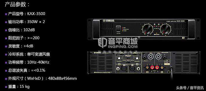 商品名称:雅马哈KAX-3500品牌:雅马哈输出接口:音箱柱输出炮筒输出用途:KTV功放声道系统:2.0声道功能:后级扩展功能:立体声并接功能桥接功能输入接口:线性输入