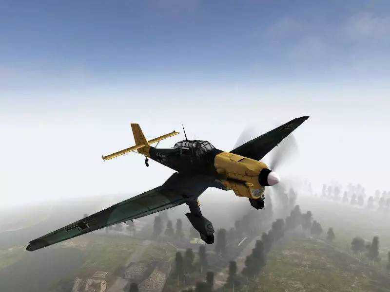 Ju-87俯冲轰炸机最容易辨认的特征就是它那双弯曲的鸥翼型机翼、固定式的起落架及其独有低沉的尖啸声。1940年5月,Ju87在入侵法国和低地国家时发挥了巨大作用,不仅是攻击力强大的俯冲轰炸机,也是恐怖的制造者。由于法军飞机在开战时即大部被毁,作为进攻的先驱者,Ju-87在法国上空肆无忌惮地活动,大多数法国士兵被炸弹下落的呼啸和Ju-87气笛的可怖尖啸声弄得抱着头蜷缩在战壕里,丧失了抵抗能力。敦刻尔克战役中,这种尖啸一样响彻沙滩上空。曾在此等待海滩撤离的英国军队埃利曼中战尉后来回忆说,“斯图卡就像一群巨大的地狱海鸥,在上空徘徊,一旦看准目标,先是拉起然后急速俯冲,随着刺耳的尖啸,炸弹倾泻而下,我军又是死伤众多。”只可惜,Ju-87的存世真机无法再现当年的高强度突袭,拍摄时只能用模型代替。
