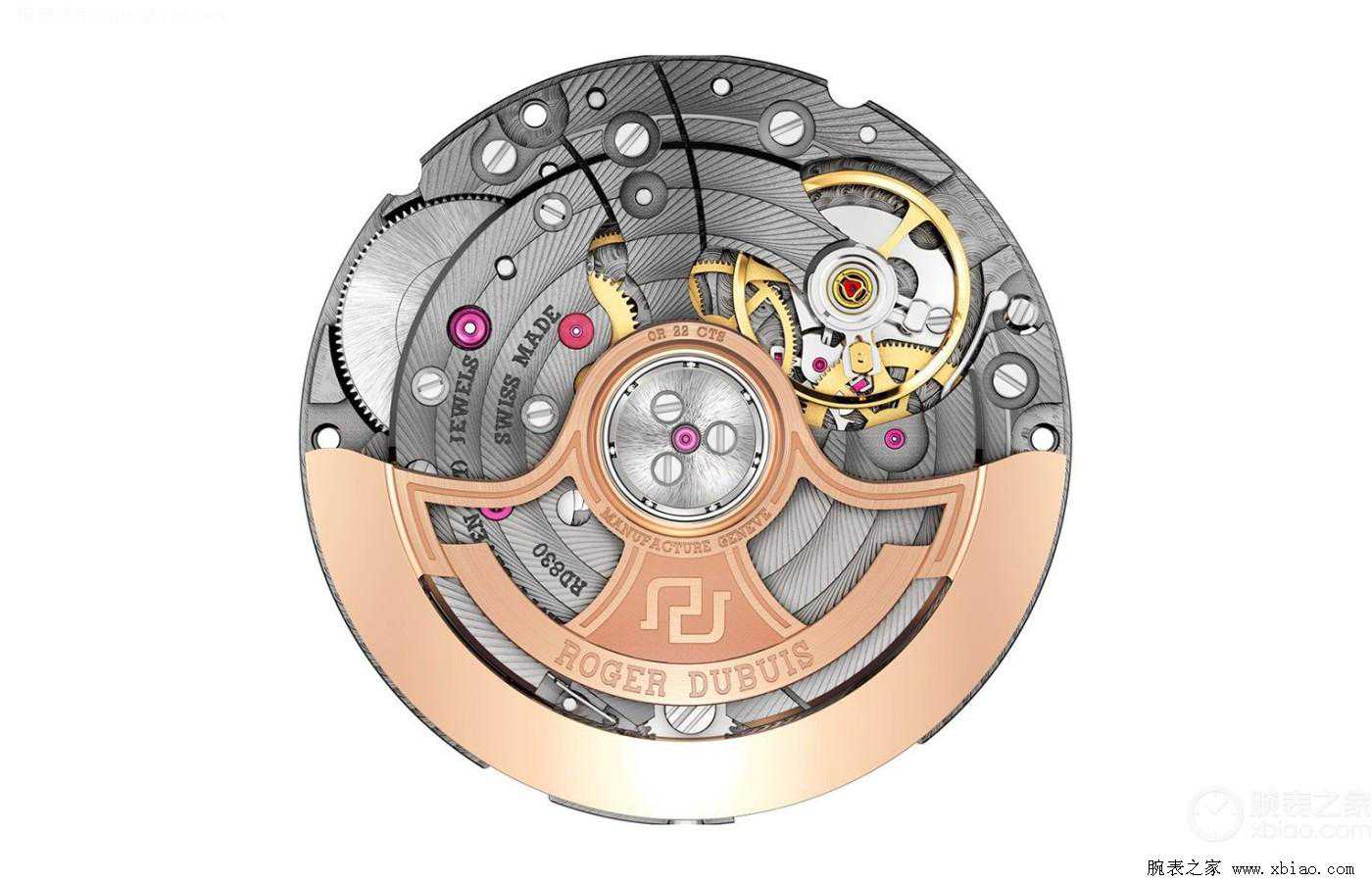 罗杰杜彼也有一款来自HorlogèreValfleurier的机芯:RD830。与江诗丹顿1326机芯一样,它采用KIF避震器及22k金自动陀。主夹板经过喷砂处理,且覆有镀铑层;桥板饰有珍珠圆纹和日内瓦波纹,且覆有NAC涂层。