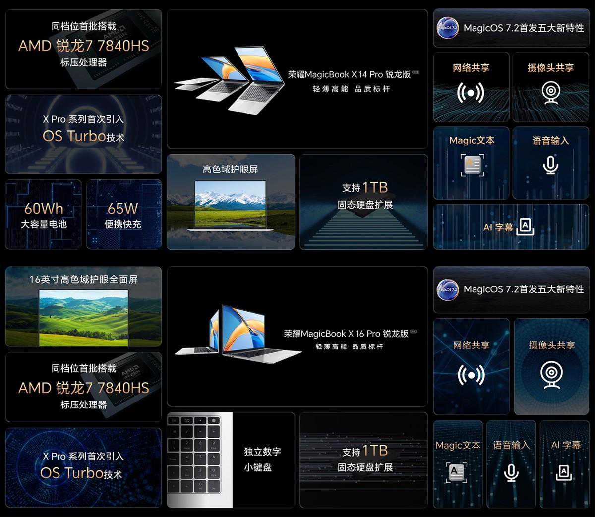 荣耀MagicBookX14Pro是一款新品,这款笔记本也采用锐龙7-7840HS处理器,16GB内存、512GBSSD,目前售价也是4199元。从价格上来看两款笔记本比较相似,但荣耀的硬盘容量小一些,好在两款笔记本都是双插槽,问题不大。接下来再看看其他指标差异。