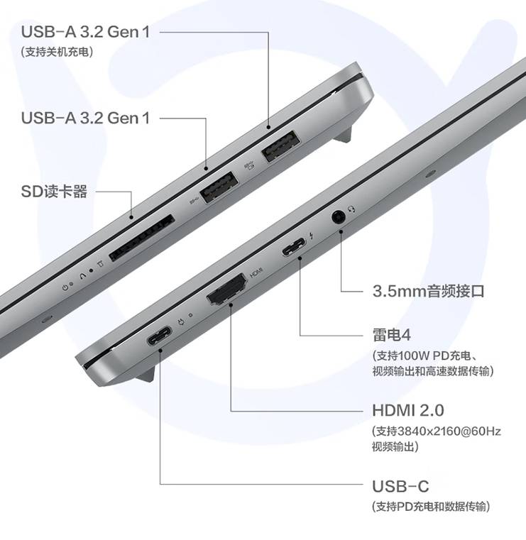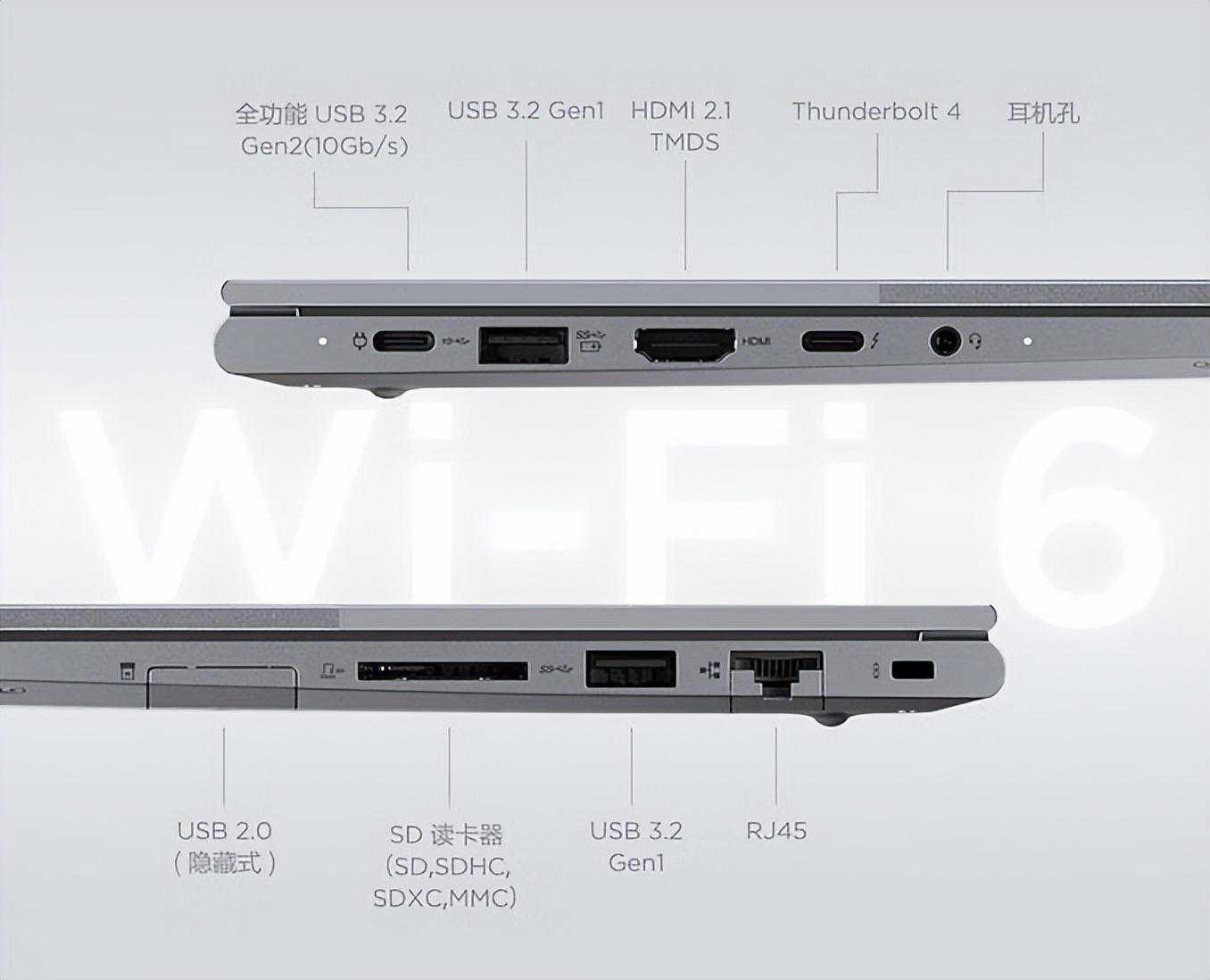 接口上十分丰富,有雷电4接口,以及丰富的USB接口,还有读卡器插槽。有75Wh电池,重量1.92Kg,预装Windows11系统。提供2年质保。