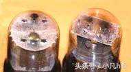 新旧管对比(左边为旧管,阴极相对玻壳上有黑斑)