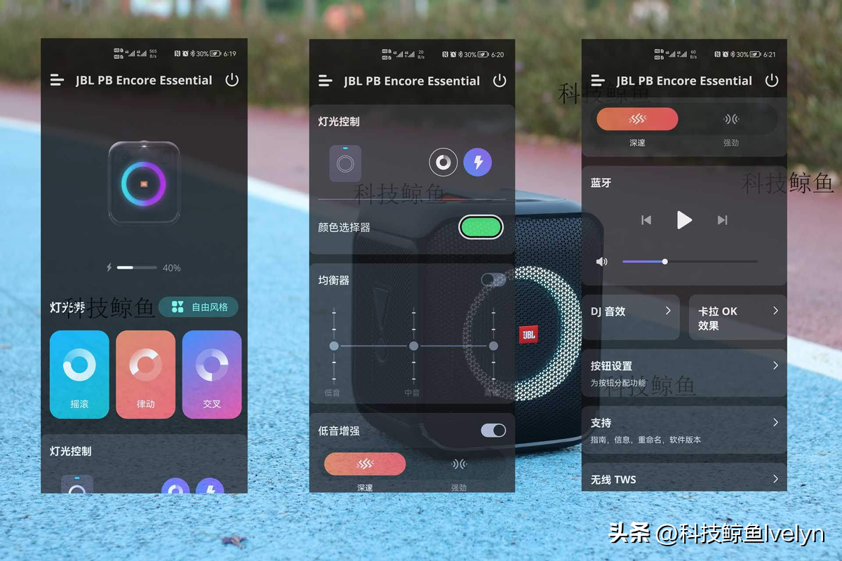 JBLPartyboxEncoreEssential还拥有自己的一个APP(PARTYBOX),通过该软件可以进行RGB灯光调节、音效切换、均衡器设置等等。