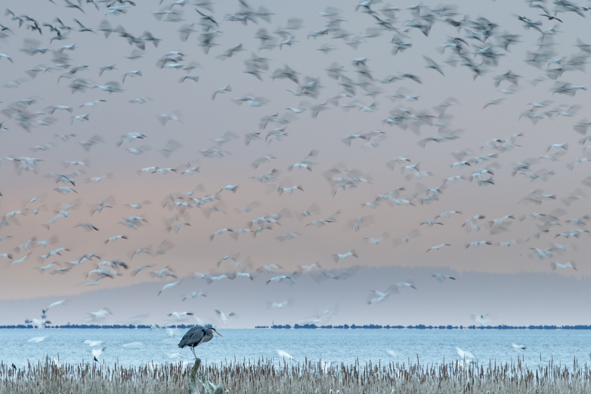 这天傍晚,风浪很大,鸟在海面上飞舞,我灵机一动看到乌飞到浪高的地方時按下了快门,由于逆光浪花特别漂亮。