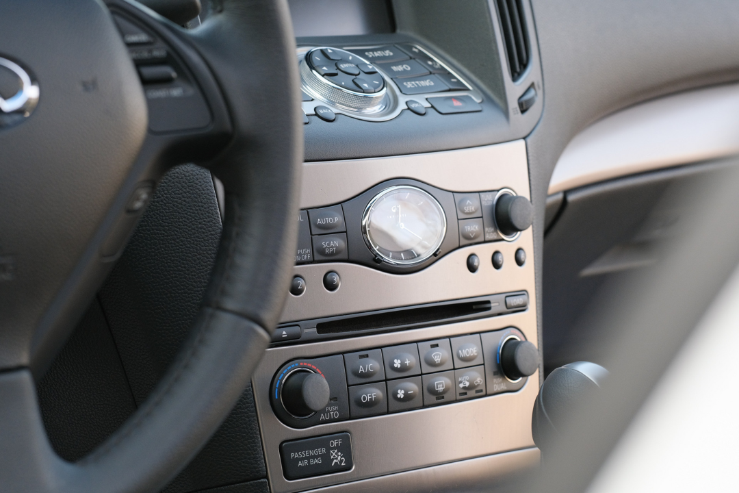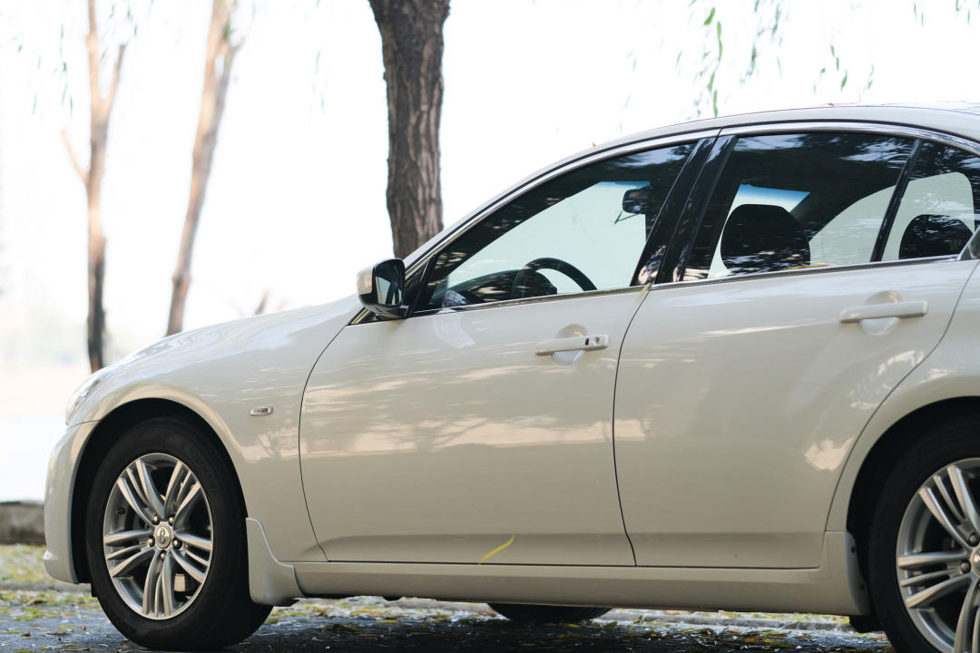 下面简单聊聊这车当年很有卖(xue)点(tou)的配置。首先就是这个细微划伤自动愈合车漆,记住只能是细微、细微的划痕,类似平时洗车啊、树枝划啊什么的。千万别以为这台G25漆面这么润是这个车漆的功劳,那是我们上架前去除了全车发黄了的车衣的结果,十年了所有金属面还有着近乎出厂时的光泽,舒服。