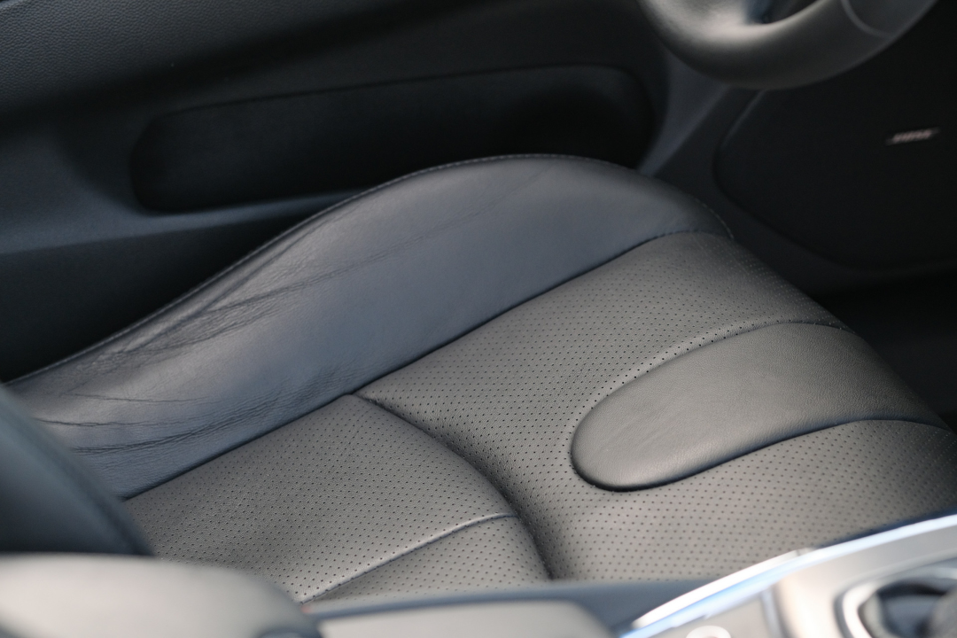 主驾座椅侧翼轻微挤压痕,坐垫皮面清爽紧致。