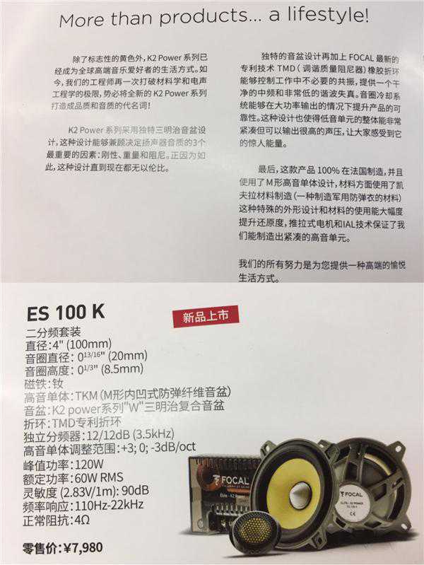 前门中高音:法国劲浪K2黄盆系列ES-100K