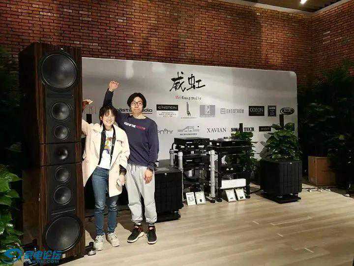 走进威虹展厅,双十六寸的音箱外形高大威猛,声场也十分宏大,正在播放的歌剧大碟很有剧院的现场感。人声小提琴重播时,低音喇叭一直不停振动。箱子一对二百多万,全套五百多万。音源也是黑胶。我问店家,中国一共有几套?答:三套。另外两套的买主一搞地产一为电商,均十分低调。应我等要求,店家播放了一张泰拉克和管风琴,正真体现了布兰诗歌的恢弘气势和管风琴的低频能量。我说这样的音箱可能需要80平方米的房间。店家操起话筒,讲解小空间玩大音箱和音箱买回家其实是半成品之类的发烧经,赢得听众掌声。