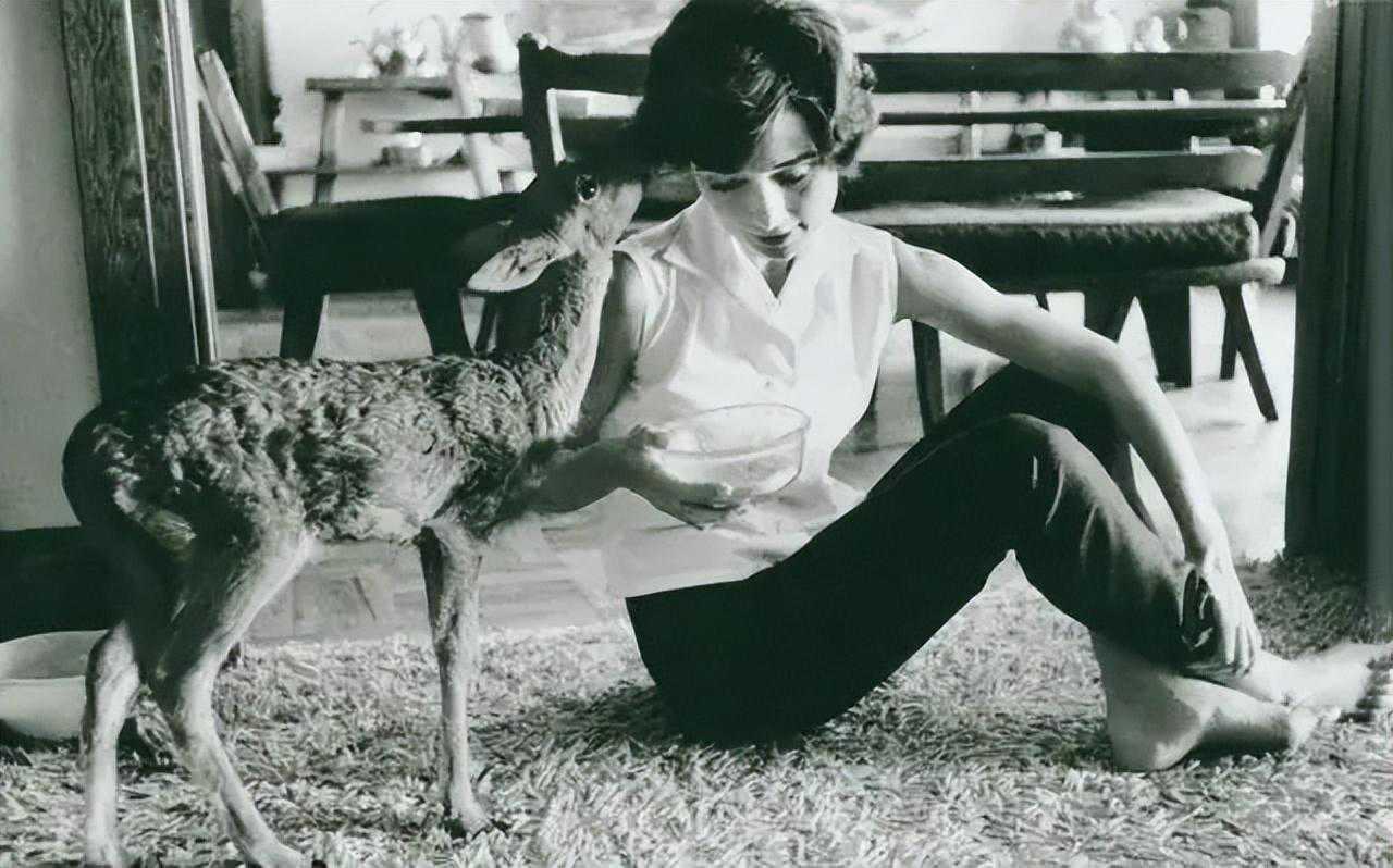 她深爱孩子与动物,曾收养小鹿与小狗