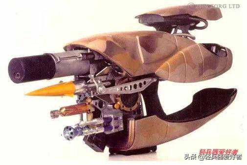 有趣的是这支科幻武器使用.44口径子弹,并设计了双扳机的特色。为整支手枪的科幻韵味增加了不少。