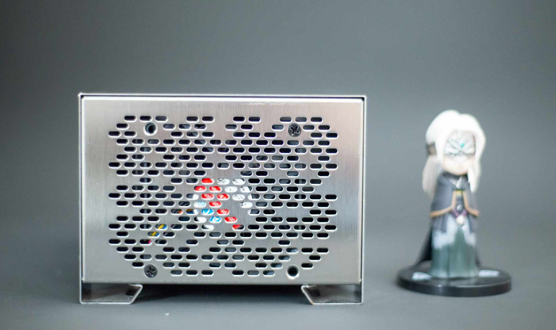 ▼机箱设计很简单,背面是密密麻麻的出风口。