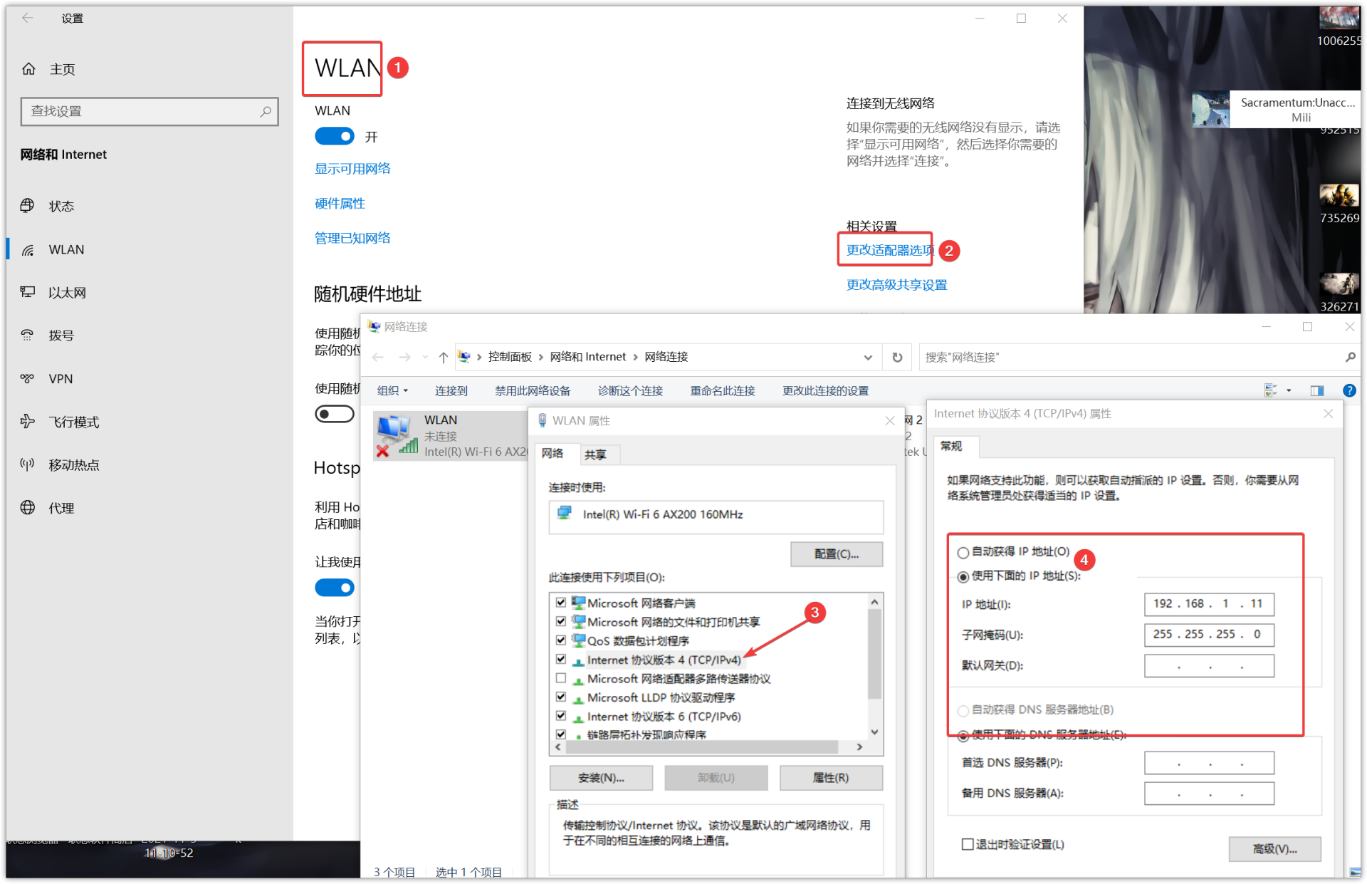 ▼如果想自行设定IP地址,可以按照如下操作: