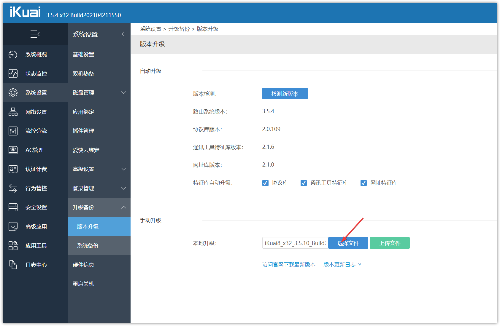 ▼重启之前我们可以顺便把iKuai升级到最新版本,进入iKuai官网下载页面下载最新版的固件包。