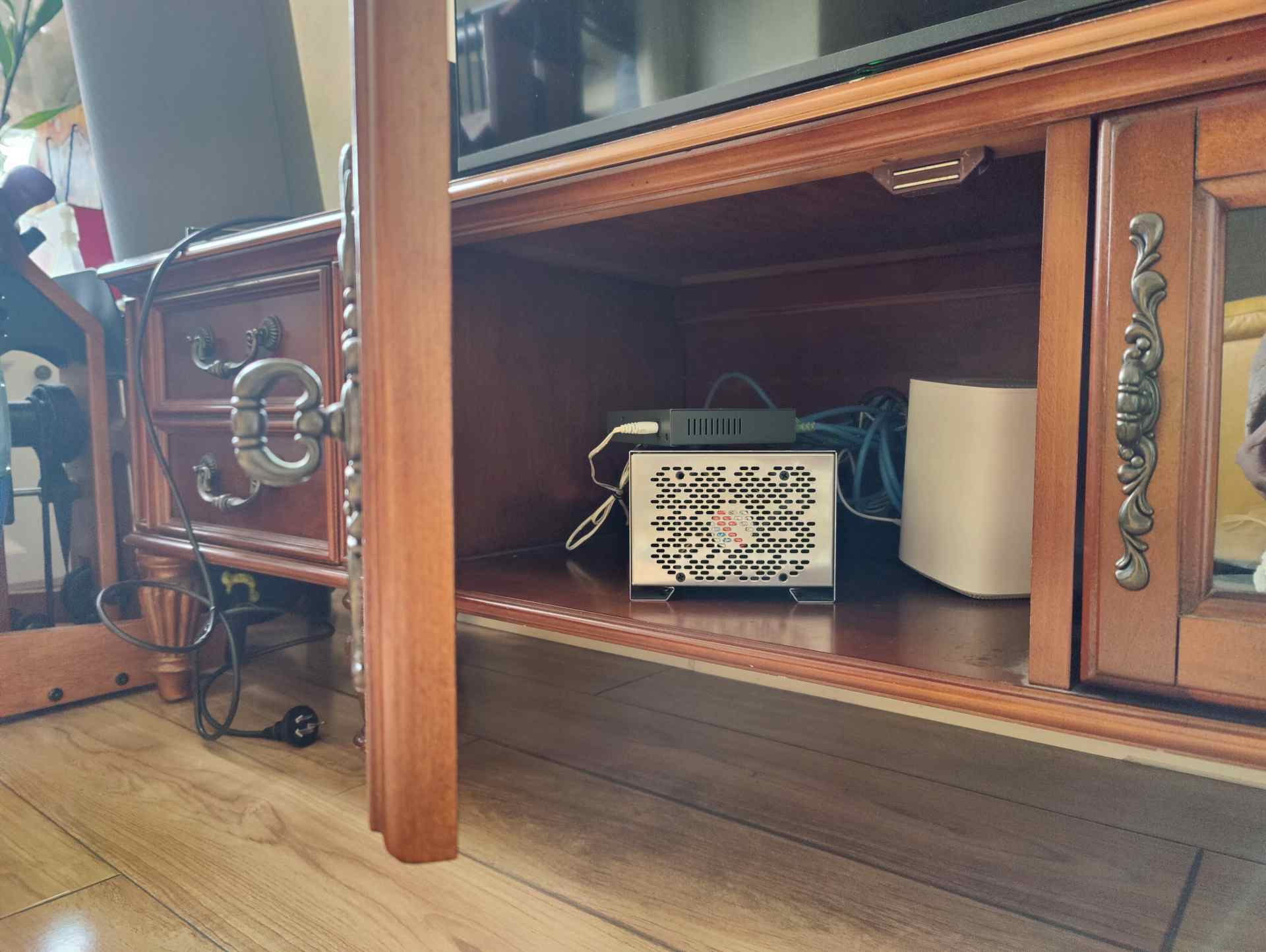 要说倍控J4125也可以充当AIO,但挂载硬盘需要自行加工,而且我看其他网友改造出来的成品不算好看。毕竟加了硬盘就不能放弱电箱了,放在室内还是颜值高点更妥。所以发现自己还真没趁手的机器。