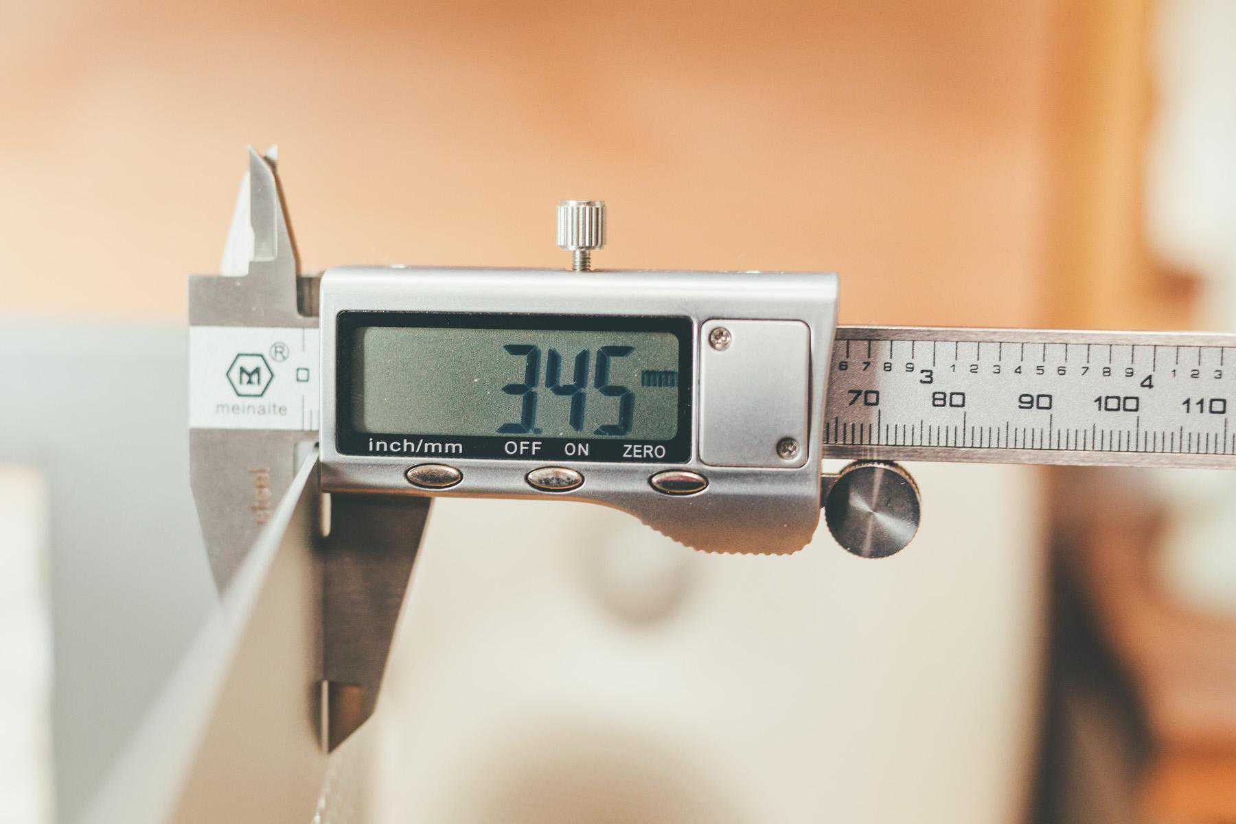 官宣板材3mm,实测为3.45mm,排除误差也是超过3mm。