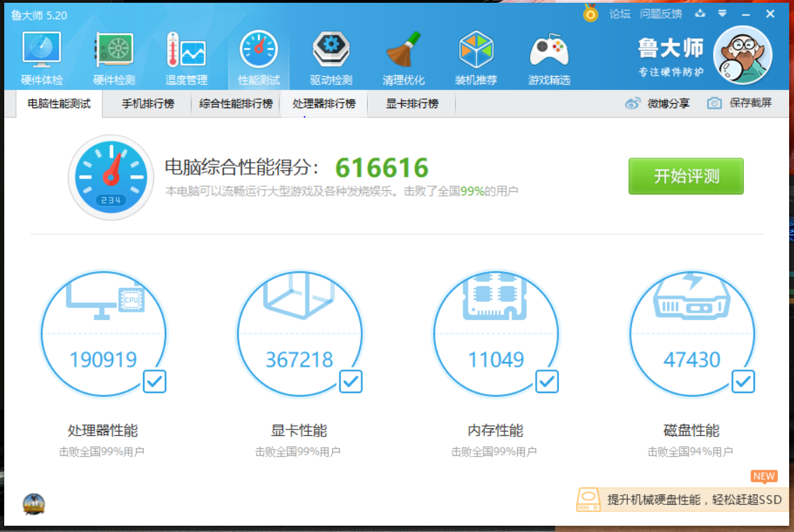 娱乐大师给出了616616的跑分,挺多6的,不过就参考下好了。