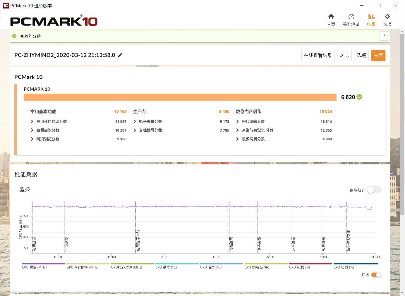 PCmark基准场景下测试分数为6820,在数位创作中照片编辑分数最高,作为生产力已经满足了我至少50%的需求。