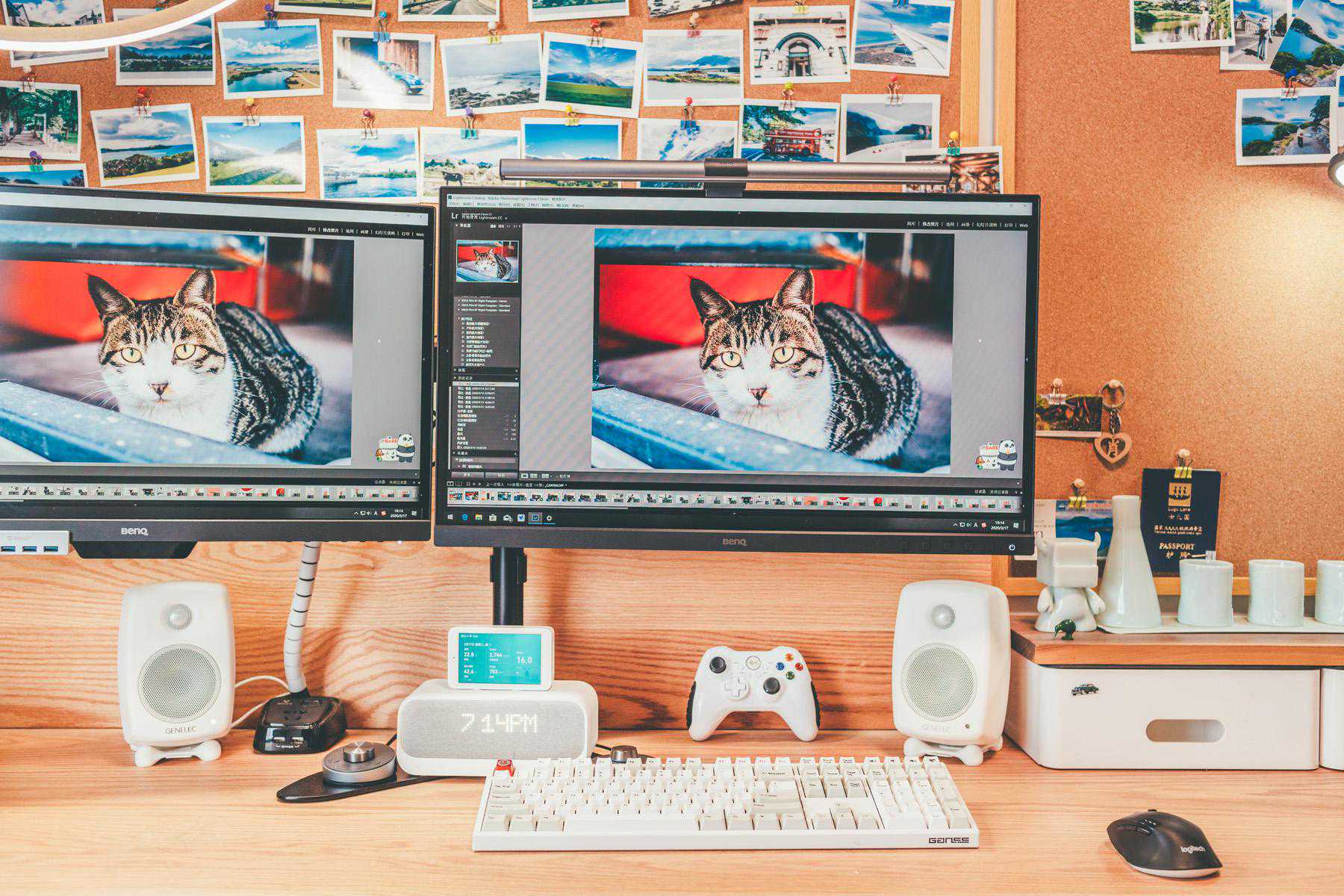 桌面彻底清爽了,只是抛弃原来明基SW270C优秀的底座有一些遗憾,还是希望明基能尽快出自己的双屏显示器支架。