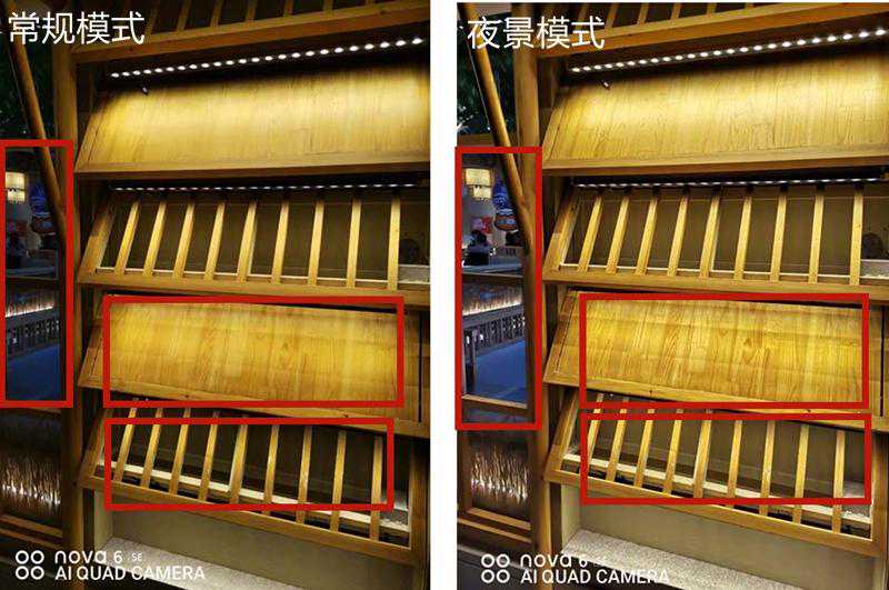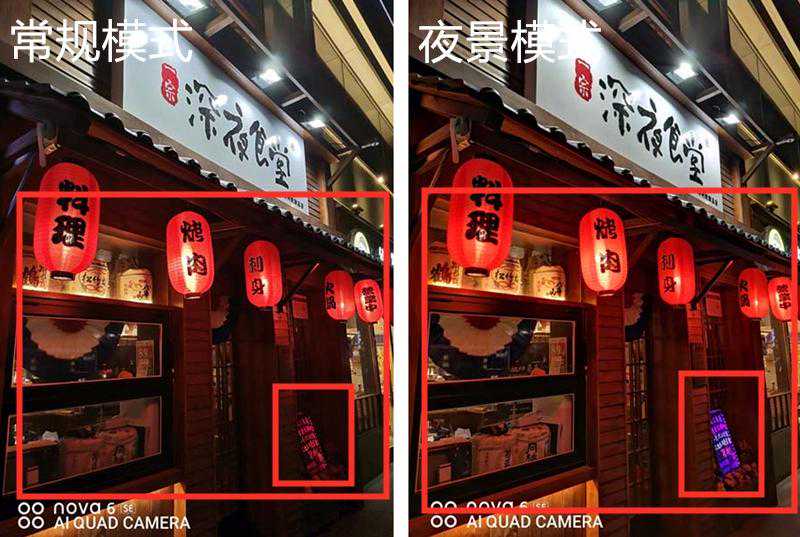 夜间一直都是华为手机的主场。从以上对比当中可以看到在光线亮度并不是极端暗的城市夜景当中,华为nova6SE不追求激进的亮度提升,而是尽力保留夜间景致的特色观感。城市夜景下由于光源复杂而出现的白平衡失准,这里华为nova6SE可以通过手持超级夜景下的AI图像合成功能得到最准确的色彩还原。色彩更艳丽,场景更生动。