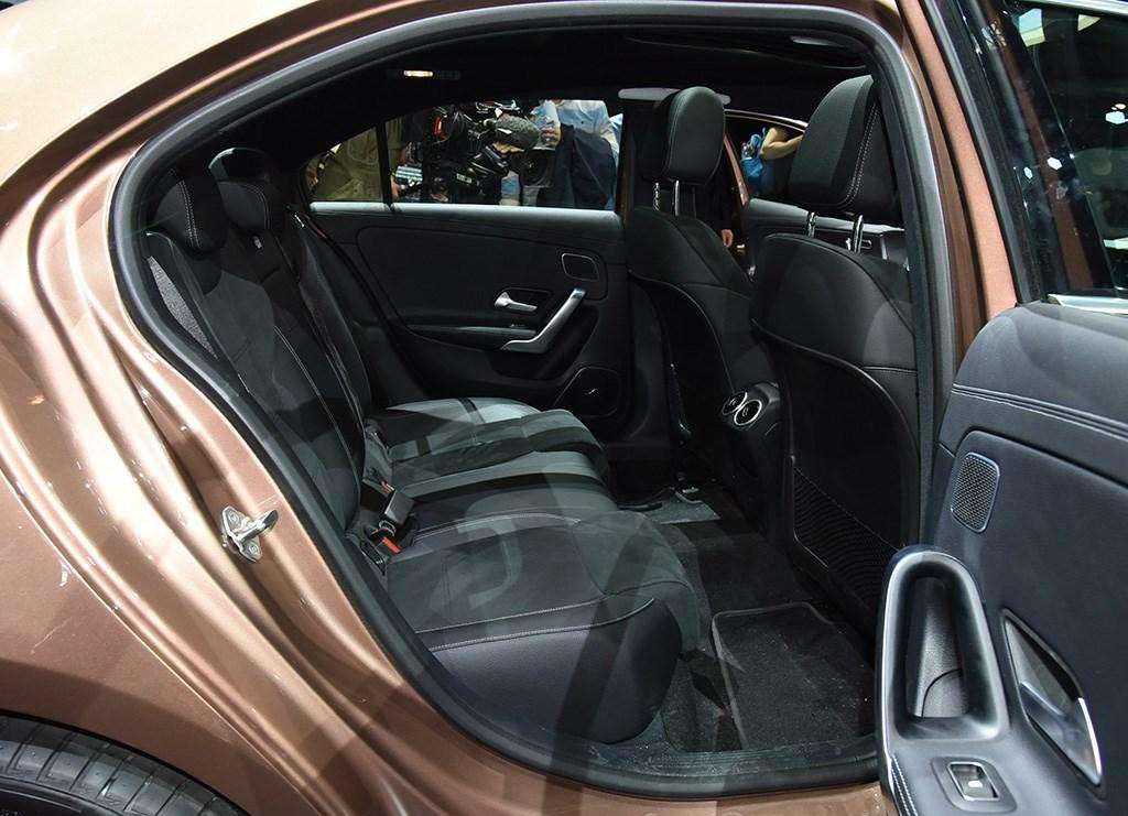 我们再来看一说他的空间。加长轴距嘛,紧凑级车大家也是挺关心后排空间,先看一下,先来说一下设计吧,相比奔驰全系车来讲,实A级的设计我觉得是很有新鲜感的。你可以看到它的门把手是外凸的设计很有设计感,然后可以把手肘搭在这,很舒服。好说一下个座椅可以看到,然后头枕这些都有,没有任何问题。和竞品相比,比如A3还有一系,毫无疑问都是更大的。它的坐垫也是根据国内市场的需求,坐垫加长了20毫米,然后加厚了十毫米。然后后排还是有这个隆起的而且不低。后排两个出风口,然后排配有两个Type-c借口。