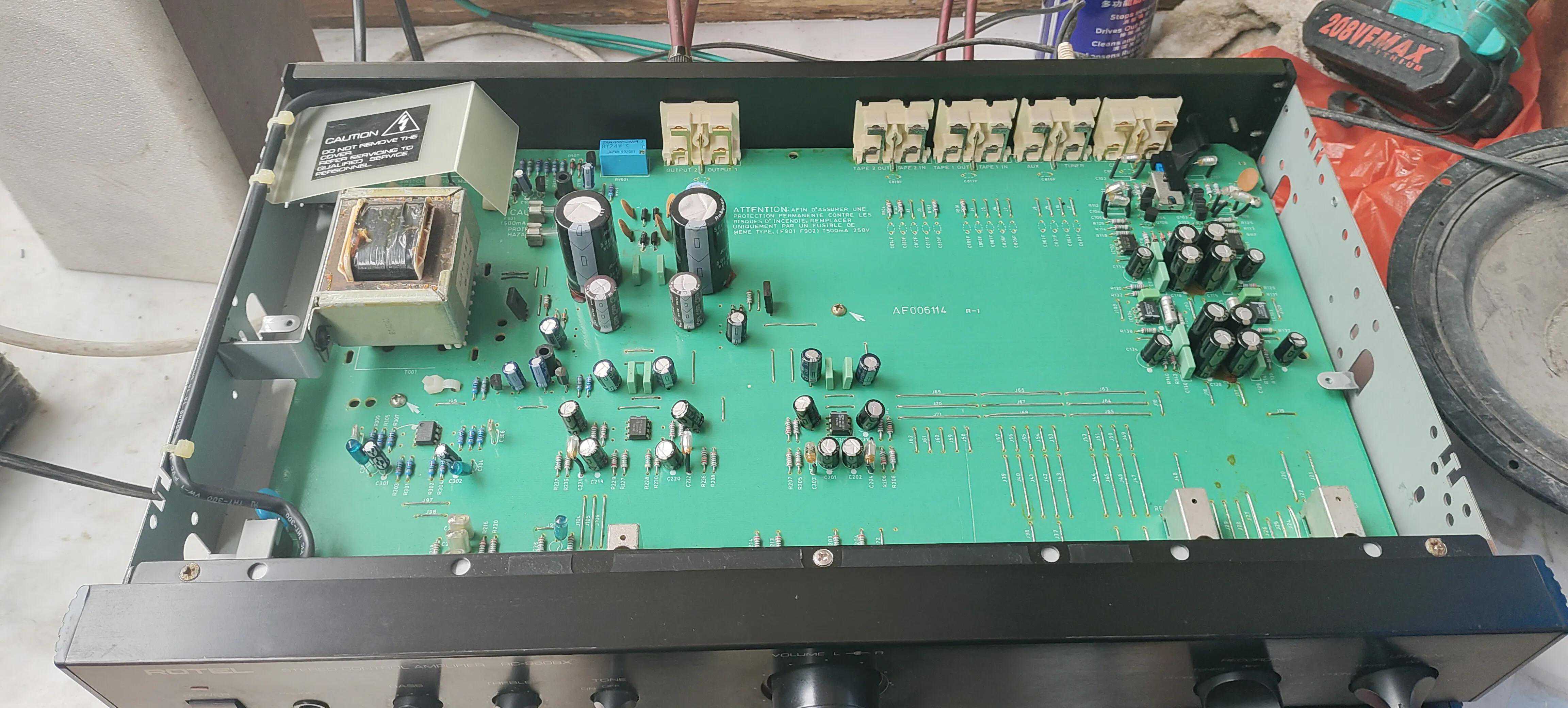 今天有位顾客拿一台二手英国路遥功放音响维修,说是有个声道不响。这台前后级功放是二手货,广东汕头那边淘回来的,用了两个多月,打开盖子检查发现是有一边声道的保险烧了,仔细看看检查应该是放大声音亮烧保险管,功放管没有烧,更换保险上机,声音正常,还算可以有得救。