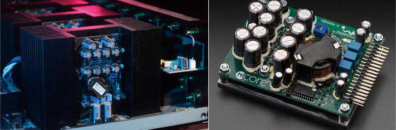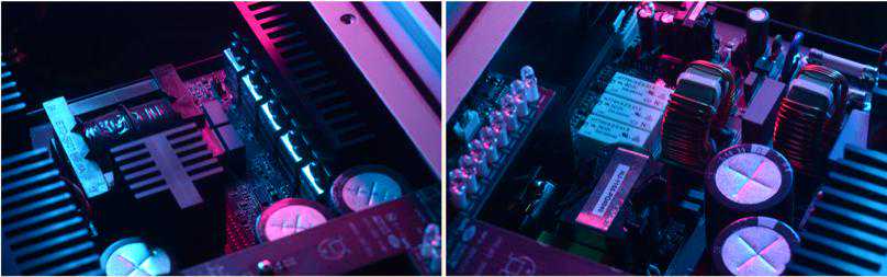D类功放模块部分是HypexNC500OEM,改良了散热器,右图为原版的NC500OEM,散热部分是一块金属板
