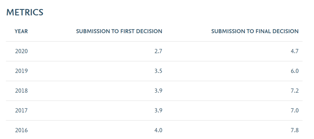 Biochimie官网表明从提交到第一次决定的平均时间:2.7周,比往年公布的速度都加快了一些;通过对已发表文章审稿速度的抽样统计,大部分文章的审稿周期都是在3个月左右便可接受,快的一个半月便可接收,慢的也有需要3个多月的,总的来说审稿效率属于正常偏快,审稿周期差异不大!