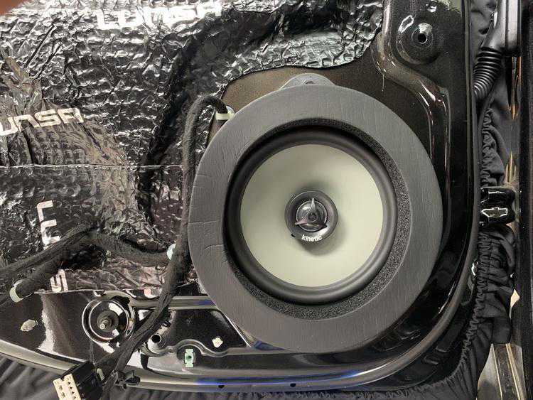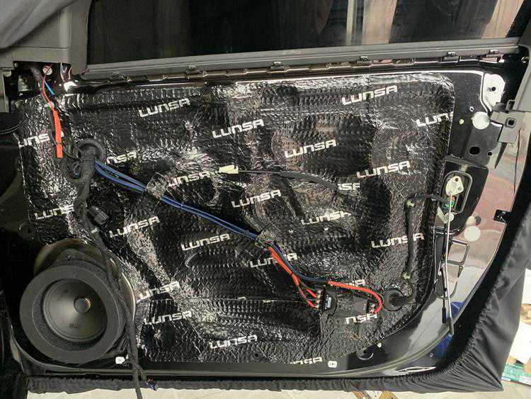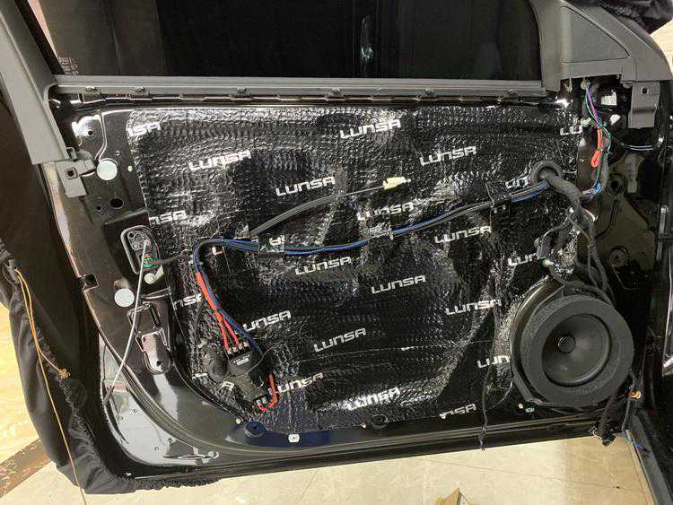 对门板做双层隔音处理,将前声场喇叭安装在汽车原位