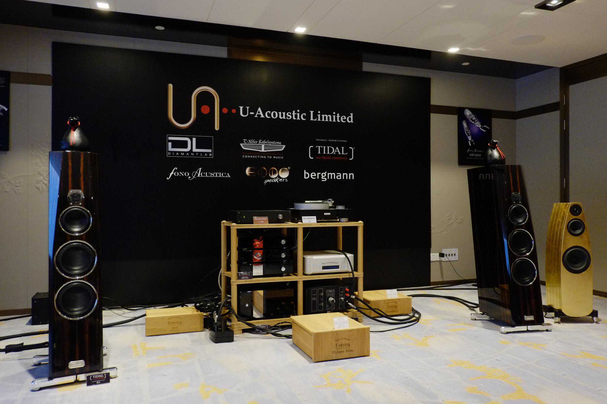 U-Acoustic展示主要以bergmann唱盘搭配TidalPresencio唱放前级和ImpulseMononloc单声道后级,由TIDALCONTRIVAG2喇叭出声。虽然喇叭未是旗舰型号,但西装搭配的出色配合度和表现力依然值得一赞。音乐农夫几只吸音老鼠和硕大的地盒也分外吸引眼球。