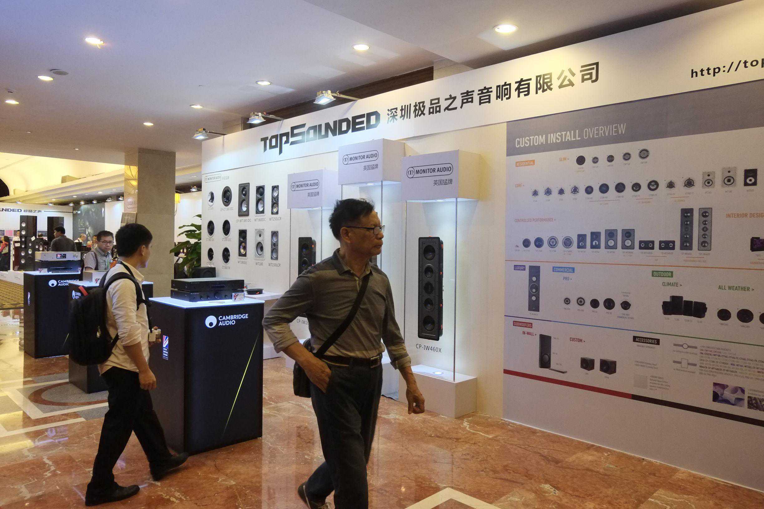 深圳极品之声些MONITORAUDIO(英国猛牌),Cambridgeaudio(英国剑桥),QUESTED(罗杰之声),REVOX(瑞华士)出展,从定制影院到两声道HIFI,多套系统同场演示。