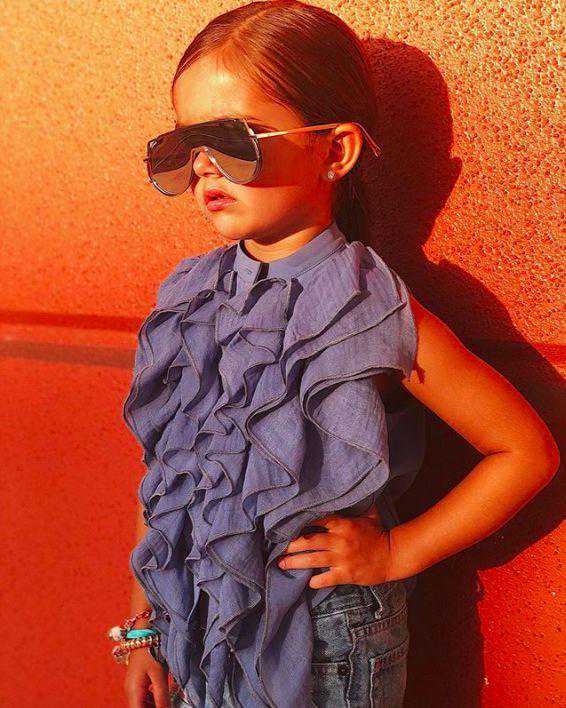 光是造型上就能看出Taylen从小就很有超模潜力,色彩感的搭配还通过叠穿营造出丰富的层次感,更离不开一副超Slay的墨镜来凹造型。