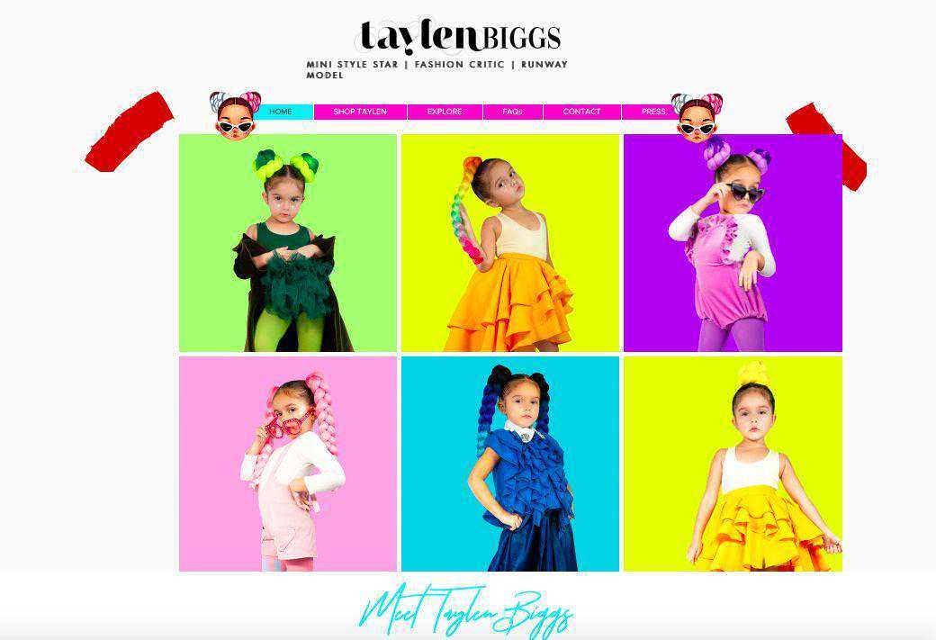 5岁的Taylen还有自己的专属网站,里面有她的生活和造型图片,还有自己的品牌系列可以购买-