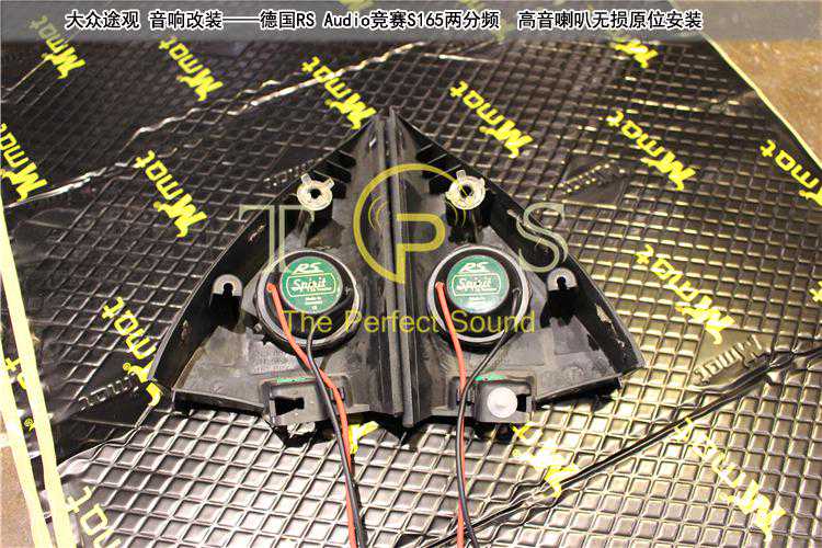 前声场高音喇叭安装,原位无损安装在前门三角位上。