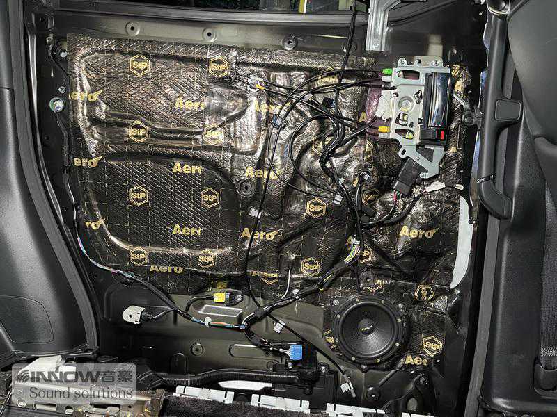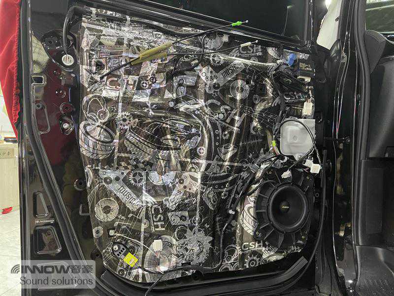 针对原车门板隔音措施欠缺的问题,技师使用STP航空炸弹对门板进行了双层止振处理,且将门板包裹紧密。这样专业的处理方式,有效隔绝了门板噪音,并为汽车喇叭提供了良好的工作环境。