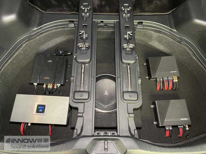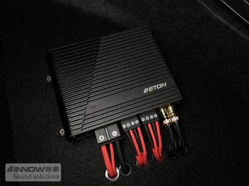 原车主机解析力较差,功率供给也非常的小,使得音频信号质量不是很好,从而对音响品质产生了影响。所以技师在音源端为汽车添加了一台日本JVCAX1220P音频处理器,并为前后声场喇叭各添加了一台德国伊顿四路功放,从而使得音频信号更加干净完成,也让音响系统的功率供应更加充足。