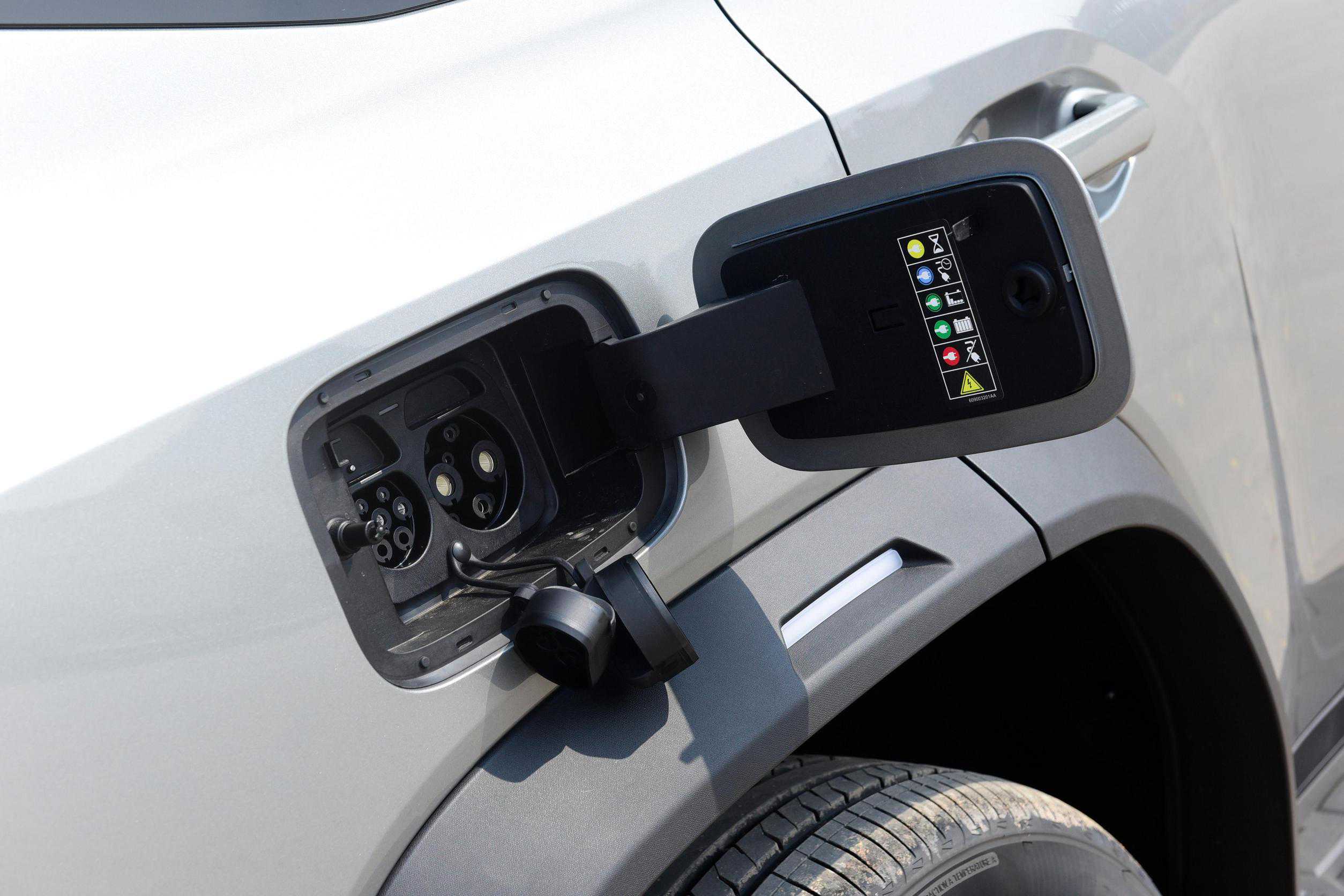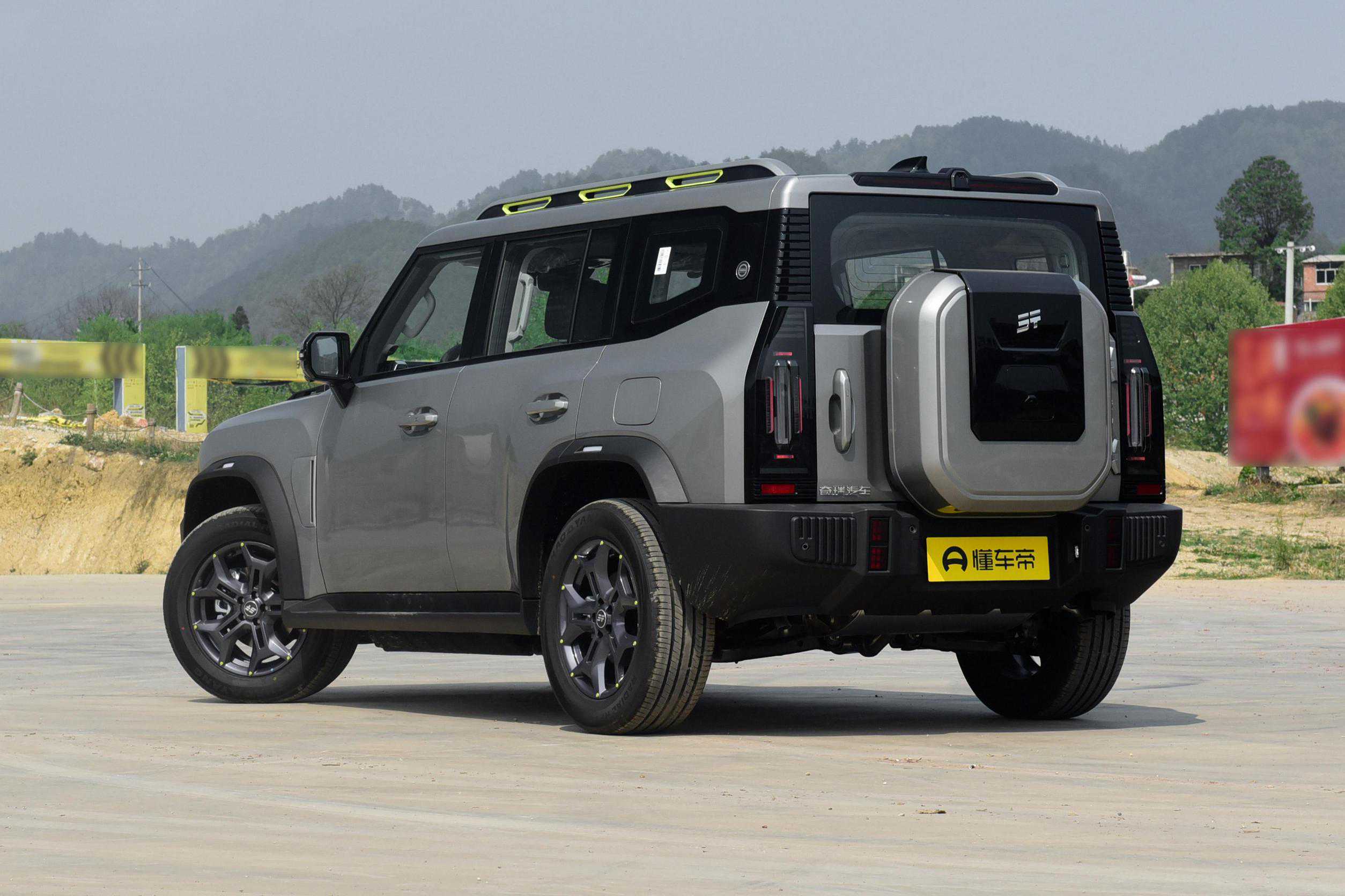 尾部方正立体,纵向布局的熏黑尾灯辨识度高,配有侧开式电动吸合尾门和外挂式备胎,车尾右侧的C-DM标识能够看出该车插电混动的身份。