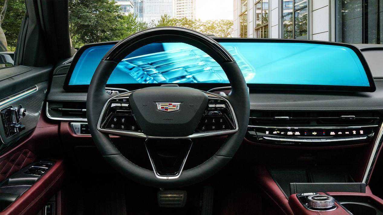 先来看CT6。CT6配备了一块33英寸分辨率达到9K的环幕式超视网膜曲面屏,内置旗舰级8155芯片和5G通信模块,三者构成了CT6“985”顶级智舱配置。超高的分辨率让整块屏幕的显示效果非常细腻,卡片式的布局和底边Dock栏的设定也符合了大部分人对于车机的操作习惯,上手几乎没难度。
