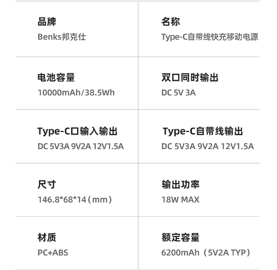 总之,在笔者看来邦克仕PB13是属于那种要颜值有颜值,要性价比有性价比的移动电源,双向18W的快充在如今也是特别的适用,非常适合那些手机续航差和经常外出的朋友,价格也还好,在百来元左右。要说美中不足的地方就是邦克仕PB13自带线只有Type-C数据线,难免会遇到适用其他接口的手机,到时候就得再带一条数据线了,当然,若是厂家可以再配备两个转接口那就更好了。