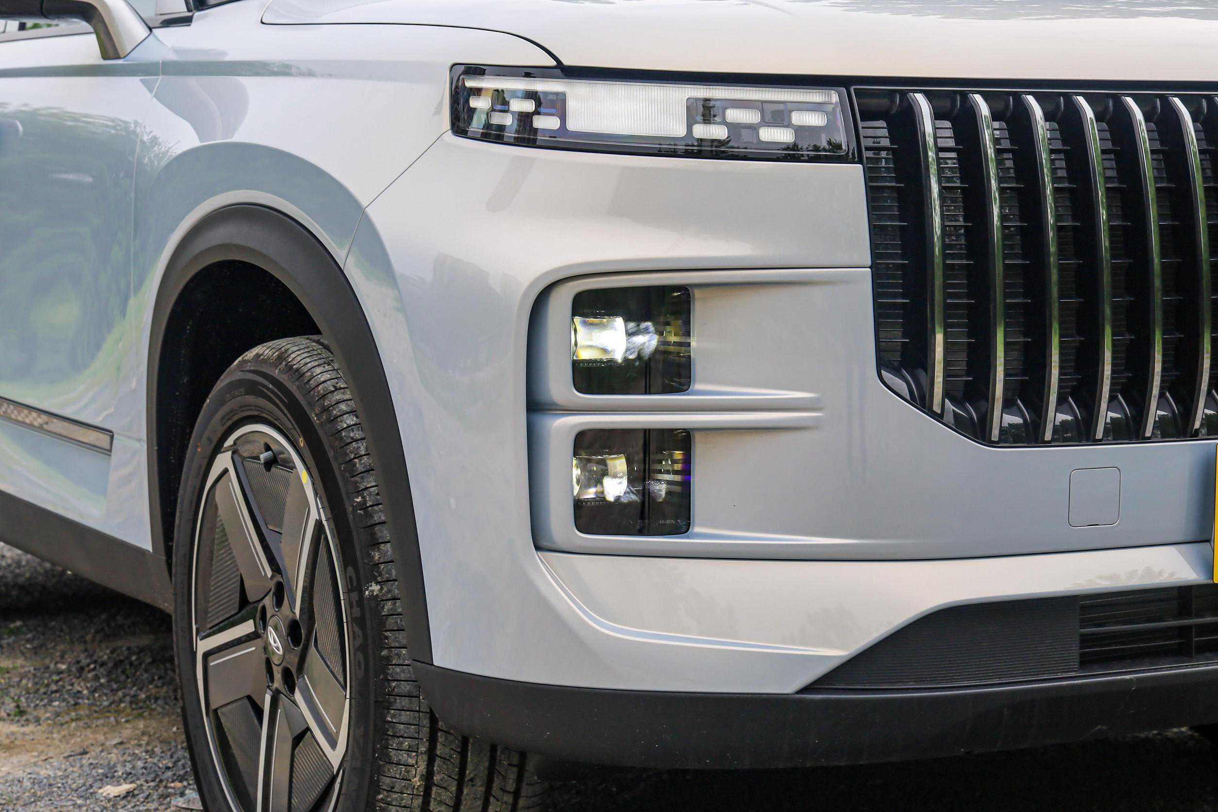 探索06C-DM的外观设计和探索06都市版基本保持一致,前脸采用了大尺寸的进气格栅,内部为直瀑镀铬饰条填充,而分体式大灯很个性,上方的是LED日间行车灯,点亮后很漂亮,前包围两侧区域则是LED远近光。