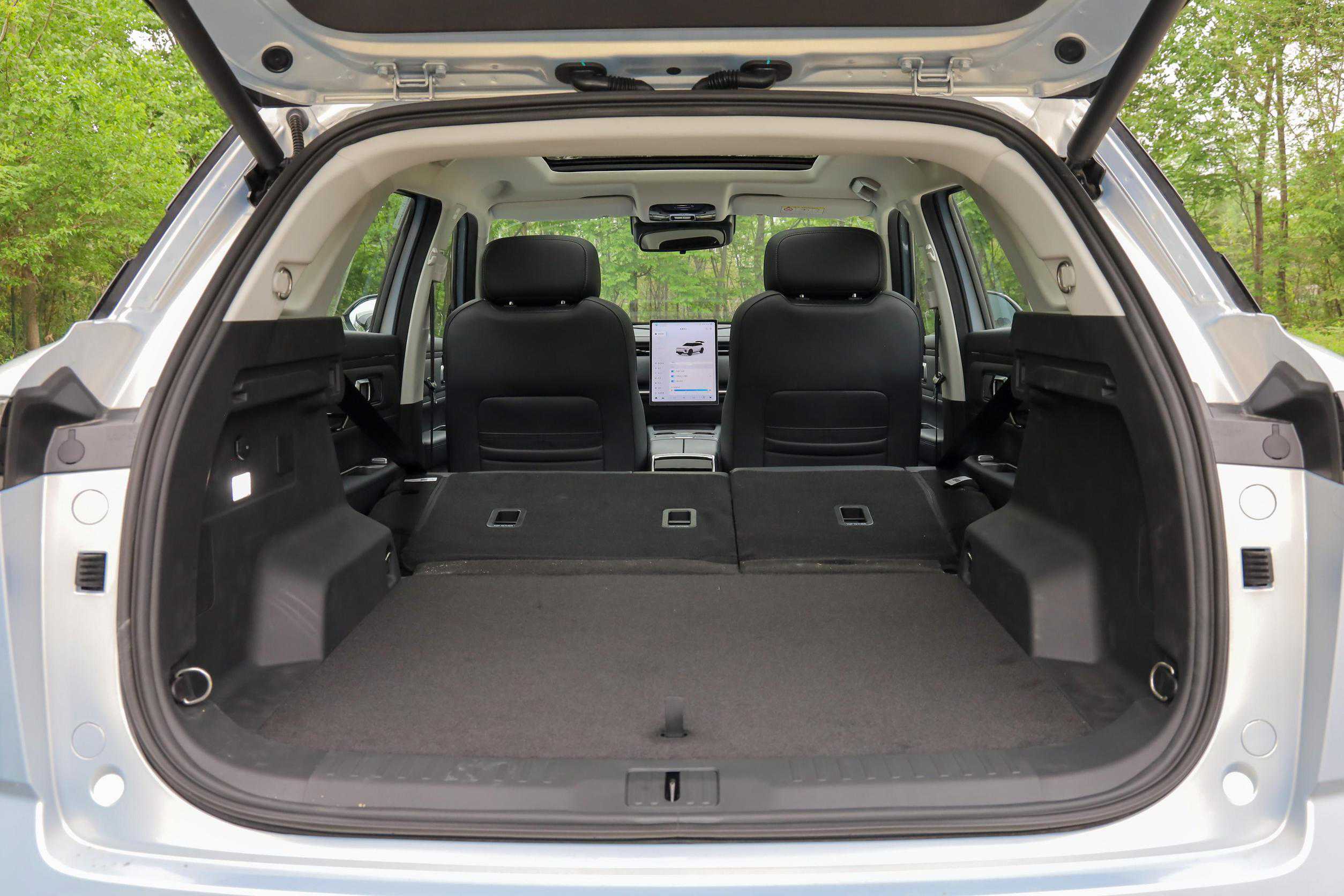 探索06C-DM的空间表现在同级别SUV中算是中规中矩,满足五口之家出行完全没问题,前排主驾驶座是电动调节,后排地板中间平整,后备厢规整,后排座椅放倒后装些大点的行李也比较方便。