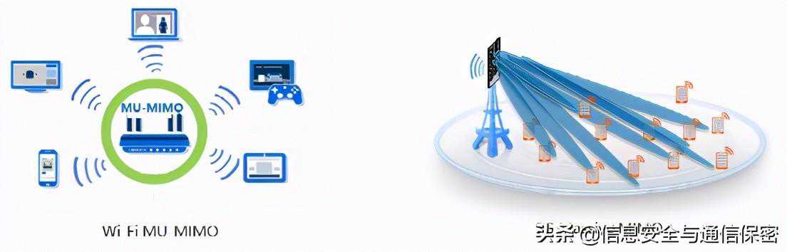 多用户多入多出(Multi-UserMultiple-InputMultiple-Output,MU-MIMO)技术最早用于Wi-Fi5wave2阶段,但只支持AP到终端的下行传输过程,其AP节点可以同时向多个支持MU-MIMO的客户端发送数据包,有效解决了之前无线AP一次只能和一个终端通信的问题。Wi-Fi6除了沿用MU-MIMO技术外,还新增了支持上行的MU-MIMO,最多支持8×8的天线。