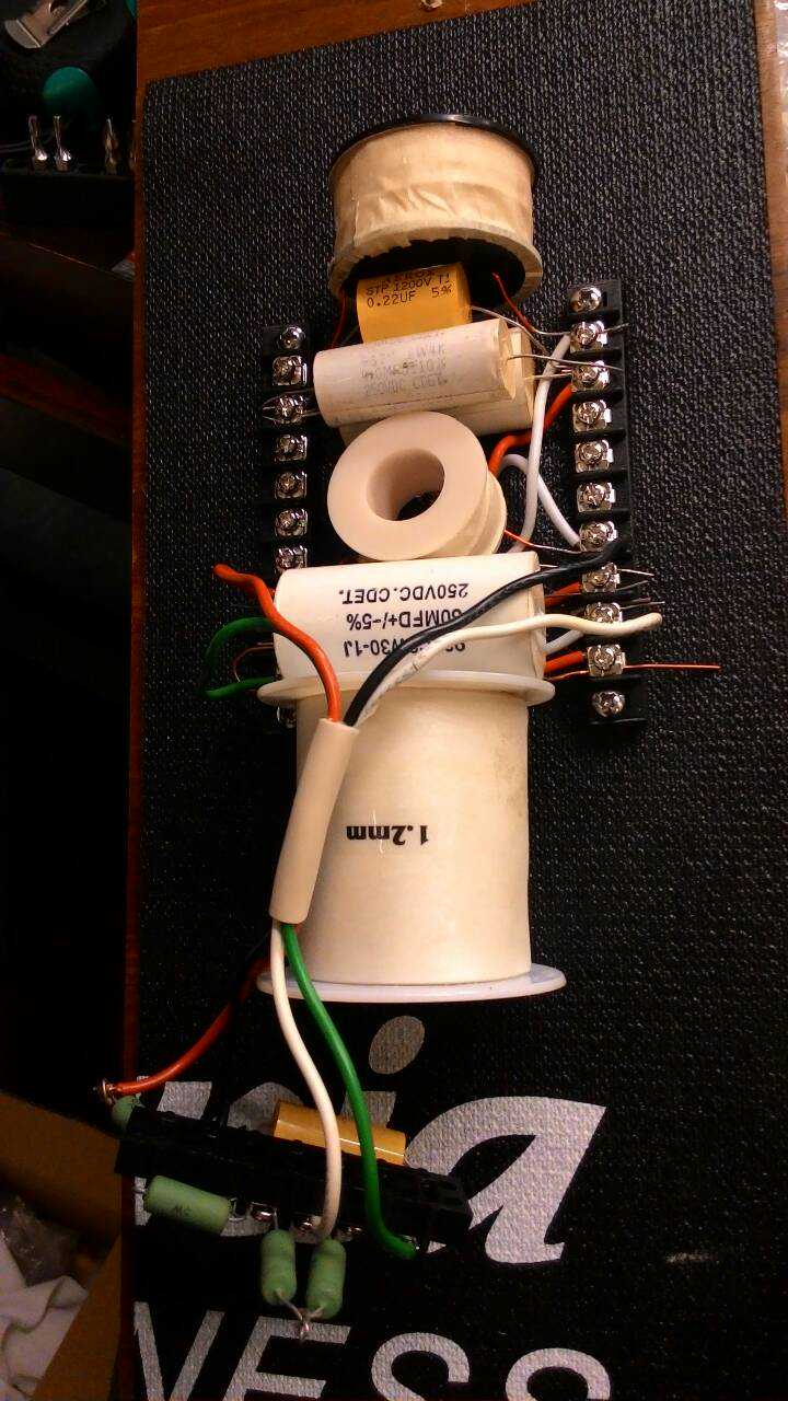 完成三分频音箱后,再与自己的2分频以及朋友的雨后LS5/12A对比,发现三分频有一个很大的缺点,就是那个现成的分频器造成高音及中音重叠过多,但低频和中频又衔接不足,所以只靠成品分频器是不行的,后来又尝试修改电容,以及学习使用L-PAD做调音改善,虽然盖上后3音路感觉好像很丰富,低频也澎湃,但是高音毛躁,整体细腻度依旧比不上之前的2分频更别提雨后初晴了。
