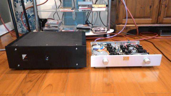 有了成功的二音路分频器制作经验后,便很快着手3音路分频器的制作。先试着替中音喇叭做了一个阻抗稳定线路及L-PAD衰减线路后,如预期的改善了三分频中频的衔接问题,但是高频分频点过低的问题尚未解决,因此决定为喇叭特性重新设计分频器,最后结合喇叭性能,决定将分频点设再500-4000HZ,便从网上购买所需的电容电阻电感,并经过一个月的空闲时间反复聆听调整,中雨让自己的喇叭声音表现柔顺自然音场宽阔,能够追的上HarbethLS5/12A,所以就顺便请坏朋友将AYREV3后级让过来,并定做了一台1:1DE镍钢铁心前级来做搭配。
