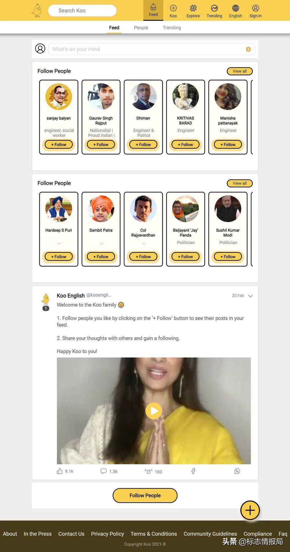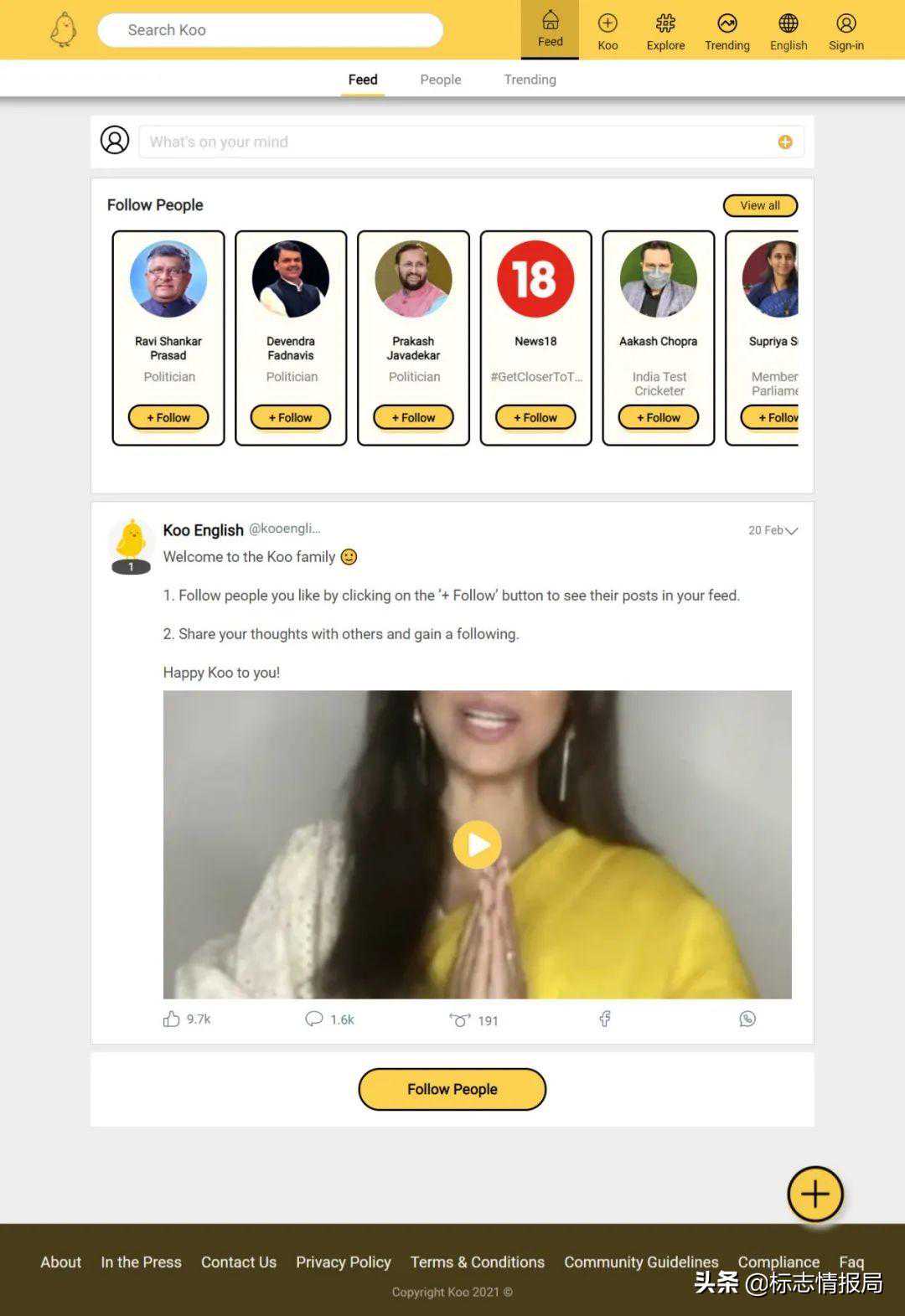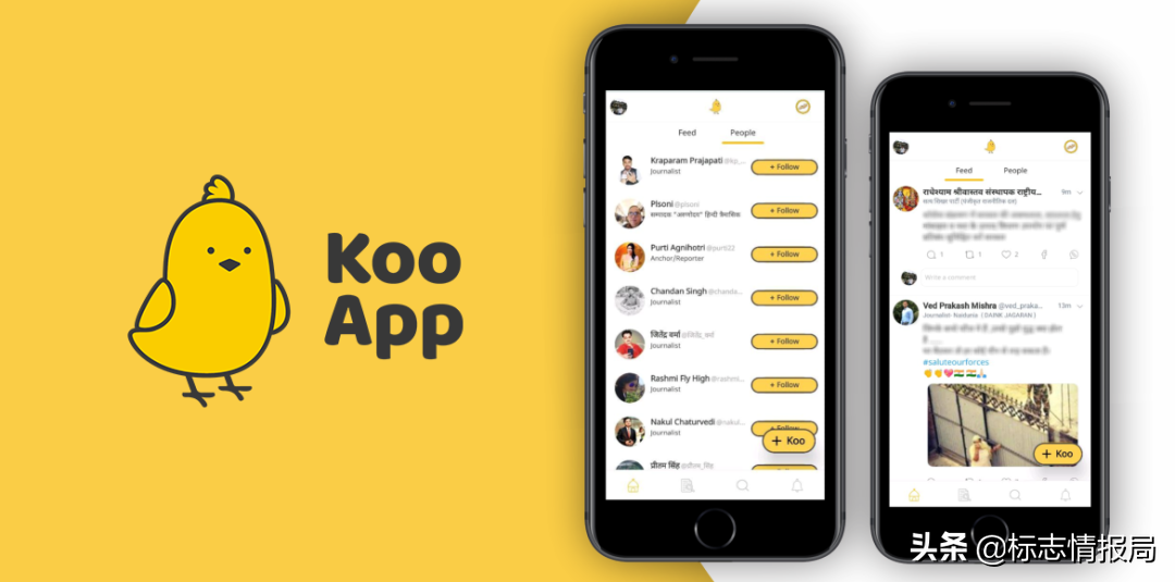 Koo几乎是公开照抄Twitter的,Koo的标志是也一只鸟,不过颜色是黄色的。