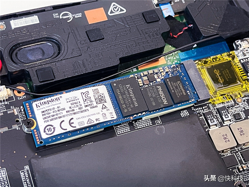 主板上仅有一个插槽,上面安装的是一根金士顿512GBNVMe固态。