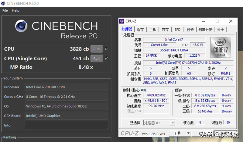 在CineBenchR20中,单核得分451cb,多核得分3828cb。