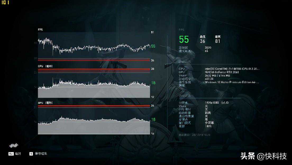 DLSS开启,光追开启,最高画质下平均帧率为55FPS。