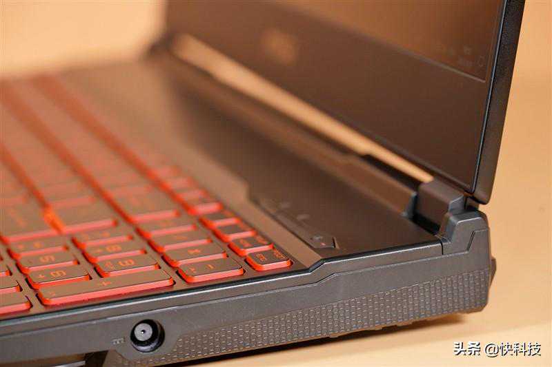 微星冲锋坦克2GL65的A面设计在游戏本中很常见,两道凸起外加中间的发光龙标,辨识度很高。