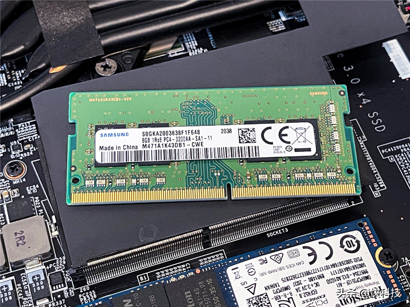 双内存插槽,自带内存为两根三星8GBDDR43200MHz内存。