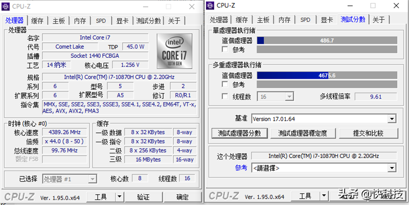 CPU-Z测试中,单核得分486.7,多核得分4675.6。